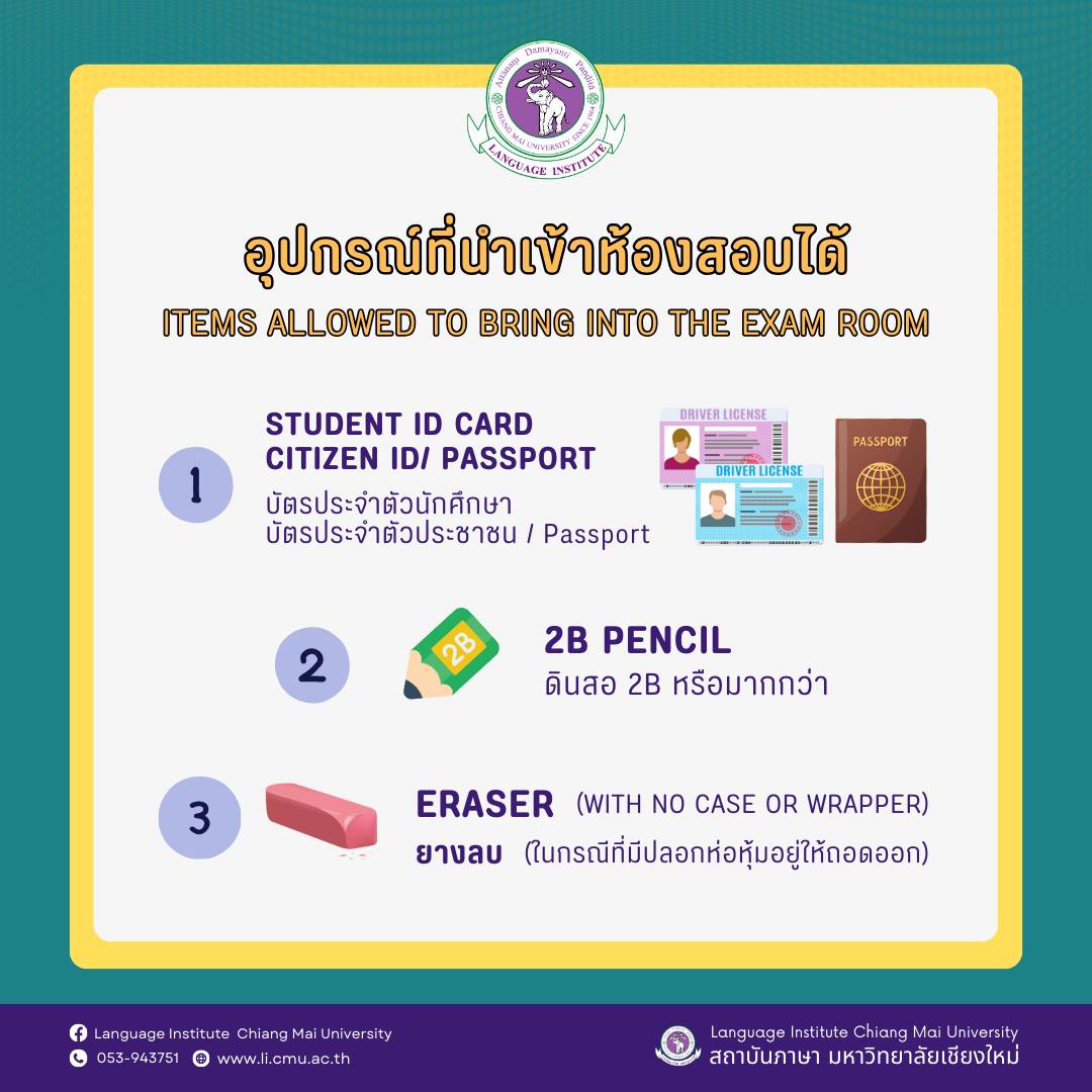 - สถานที่สอบ อาคารสถาบันภาษา มหาวิทยาลัยเชียงใหม่